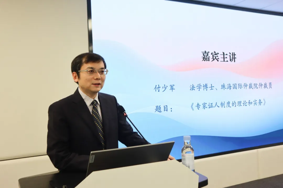 沙龙第一环节中,中国行为法学会副秘书长、法学博士、我院仲裁员付少军博士以“专家证人制度的理论和实务”为题作主旨演讲。他对中国的专家辅助人制度进行追根溯源,比较了英美法系和大陆法系中专家证人制度的的异同;还介绍了中国专家辅助人制度沿革,通过将专家辅助人与证人、鉴定人、技术调查官的比较,强调专家辅助人的专业性、非亲历性以及相当于当事人陈述的法律性质。