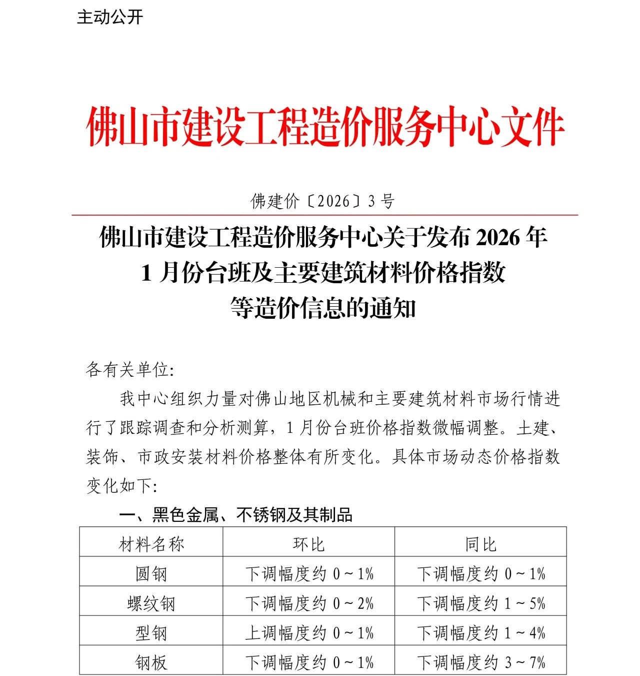 佛山市建设工程造价服务中心关于发布2026年1月份台班及主要建筑材料价格指数等造价信息的通知.pdf