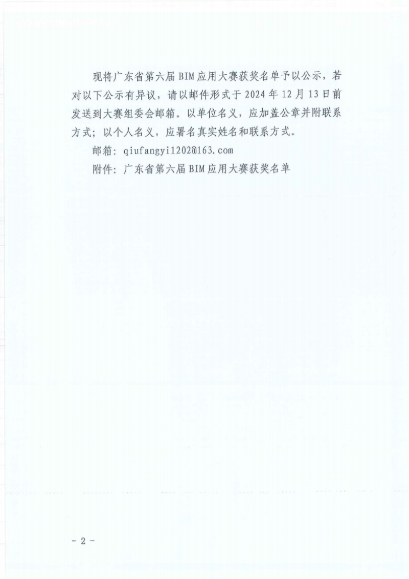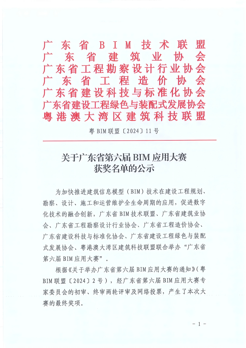 关于广东省第六届BIM应用大赛获奖名单的公示