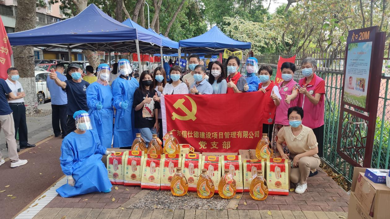 “五一”国际劳动节前夕,广东信仕德建设项目管理有限公司党支部骨干前往兴业社区的便民核酸采样点为奋战在抗疫一线的工作人员送去食用油、大米等慰问品,向他们致以节日的问候和诚挚的敬意。