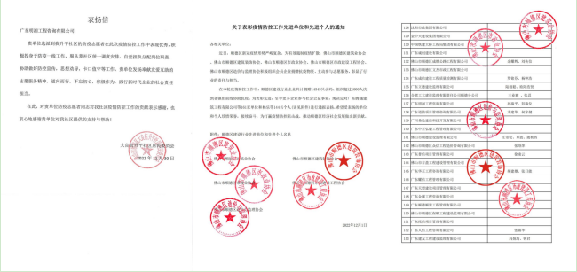 在本次疫情防控志愿者活动中,我单位党员干部、志愿者们自觉听从社区工作人员安排,协助医务人员有条不紊地开展核酸检测工作,得到了佛山市顺德区住房城乡建设和水利局、顺德造价和监理协会、大良街道升平社区工作人员的高度肯定和表扬。